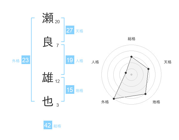 瀬良 雄也さんの名前の鑑定結果は 姓名判断ネット